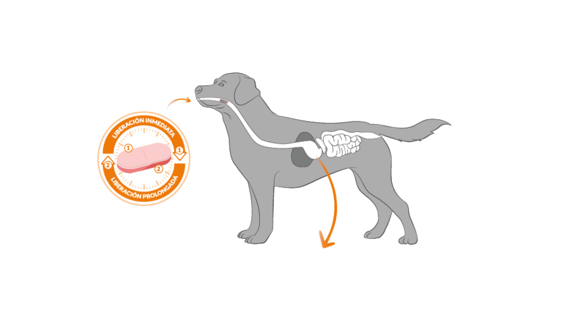 Alimento complementario para perros y gatos, en formato comprimido bicapa de liberación prolongada.