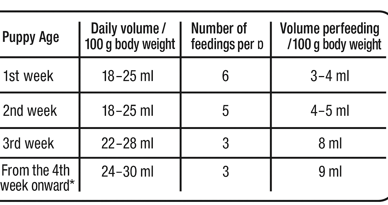 Le nombre de prises par jour et la quantité quotidienne de lait maternisé varient en fonction de l’âge et du poids de chaque petit * Tableau indicatif du volume de lait nécessaire pour un bon développement du petit :